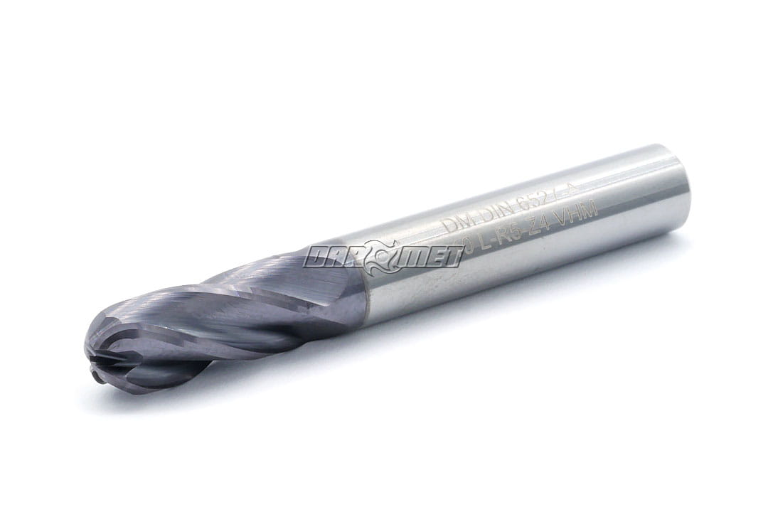 4-Flute Ball Nose R5 Solid Carbide, Long DIN6527-L, AlTiN Coated - 10 mm DARMET