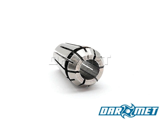 - Grooves allow for spring-loading of the collet, turning the nut causes the hole to narrow and widen.