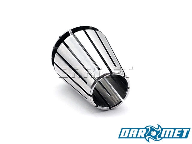 - Grooves allow for spring-loading of the collet, turning the nut causes the hole to narrow and widen.
