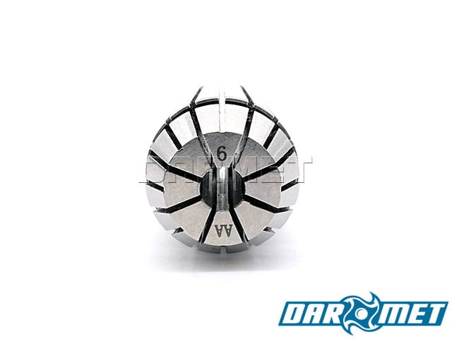 - Grooves allow for spring-loading of the collet, turning the nut causes the hole to narrow and widen.