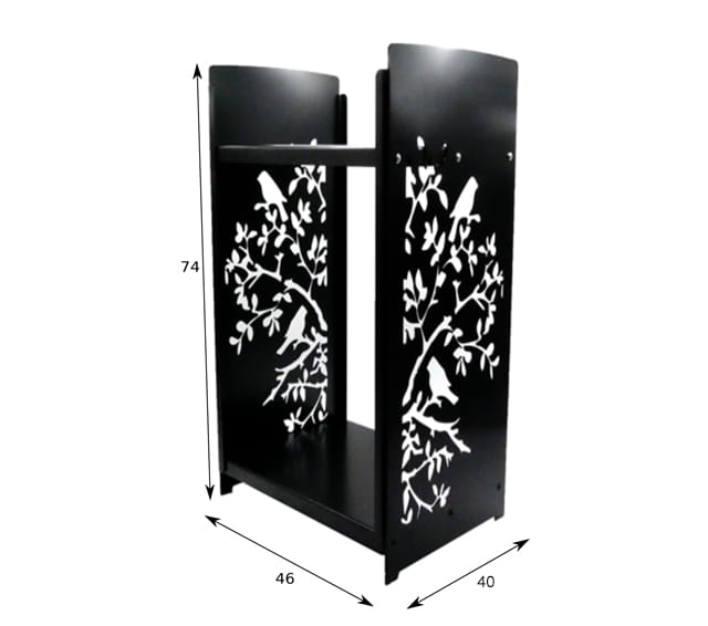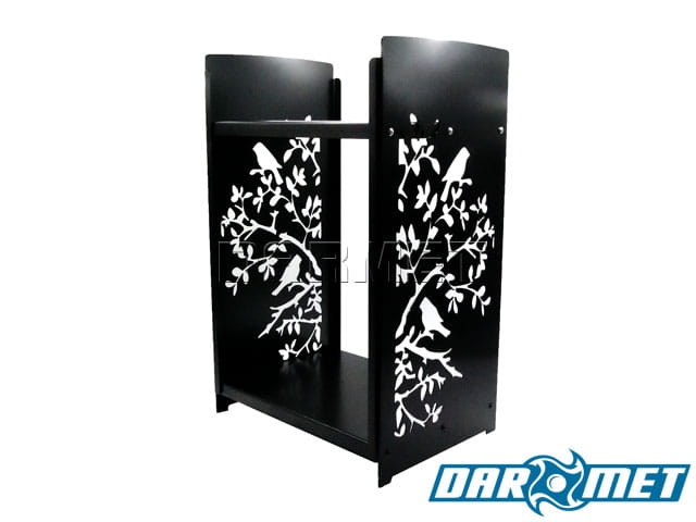 Firewood basket stand | 46 x 40 x 115 cm | sheet metal 2.5 mm | pattern: BIRD - DARMET