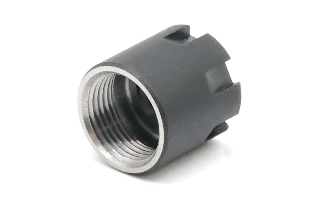 - Screw the nut with the pressed-in sleeve onto the holder so that the tool being processed can be clamped.