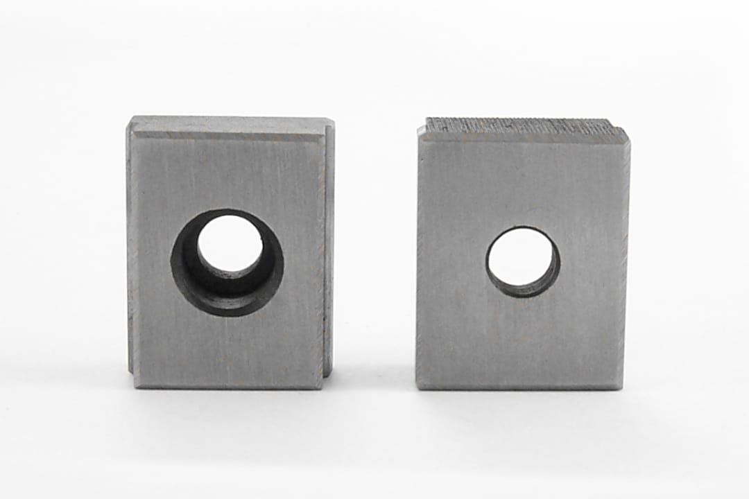 - Interchangeable locating keys allow the jig (e.g., vise) to work on machines with different T-slot widths.