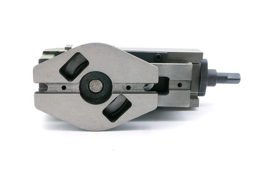 - Draw screw is fully enclosed by the body, which significantly protects it against jamming and damage from various contaminants and chips formed during machining.