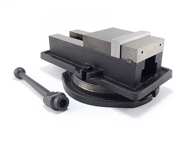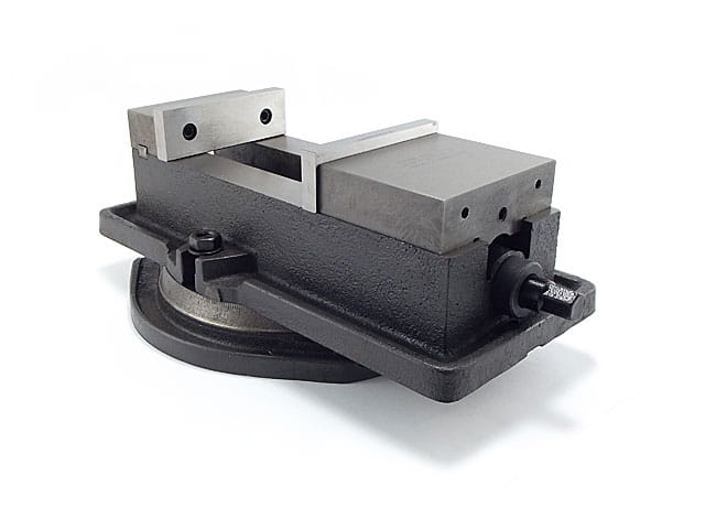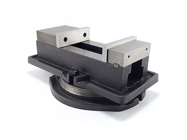 "A clamping device for fixing semifinished products and tools in conventional machines and more advanced ones, up to CNC machine tools. Essential in every workshop and production plant. The special purpose is ensured by the design of the vise, which has streamlined channels in the body and rotary base for free drainage of cooling fluid."