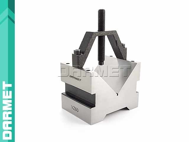 - Steel V-blocks, fully hardened, 90° cuts, with a mounting bracket.
