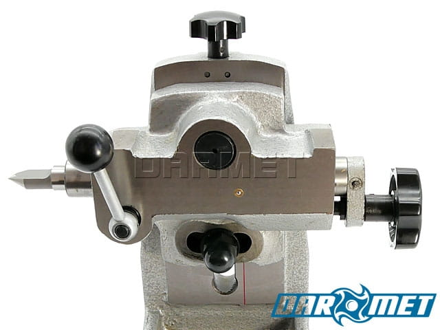 - Universal tailstock with axial and angular adjustment.